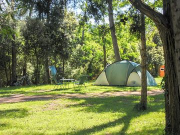 Piazzola tenda su erba e terra senza elettricità